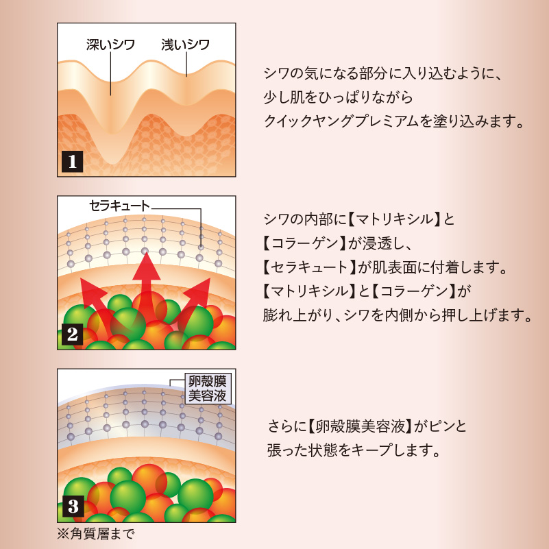 | 成分 | 水、グリセリン、ブドウ種子油、メドウフォーム油、(アクリル酸ヒドロキシエチル/アクリロイルジメチルタウリンNa)コポリマー、 プロパンジオール、スクワラン、ペンチレングリコール、BG、水溶性コラーゲン、メドウフォームエストリド、 ヒポファエラムノイデス果実油、グリセロホスホイノシトールコリン、パルミトイルトリペプチド-1、 パルミトイルトリペプチド-38、パルミトイルテトラペプチド-7、パルミトイルペンタペプチド-4、 加水分解卵殻膜、アスタキサンチン、水添レシチン、ヒドロキシプロピルシクロデキストリン、 ヘマトコッカスプルビアリスエキス、フィトステロールズ、キサンタンガム、トコフェロール、 (メタクリル酸グリセリルアミドエチル/メタクリル酸ステアリル)コポリマー、ラウリン酸ポリグリセリル-10、 カルボマー、ポリソルベート20、ポリソルベート60、EDTA-2Na、エチルヘキシルグリセリン、フェノキシエタノール |
