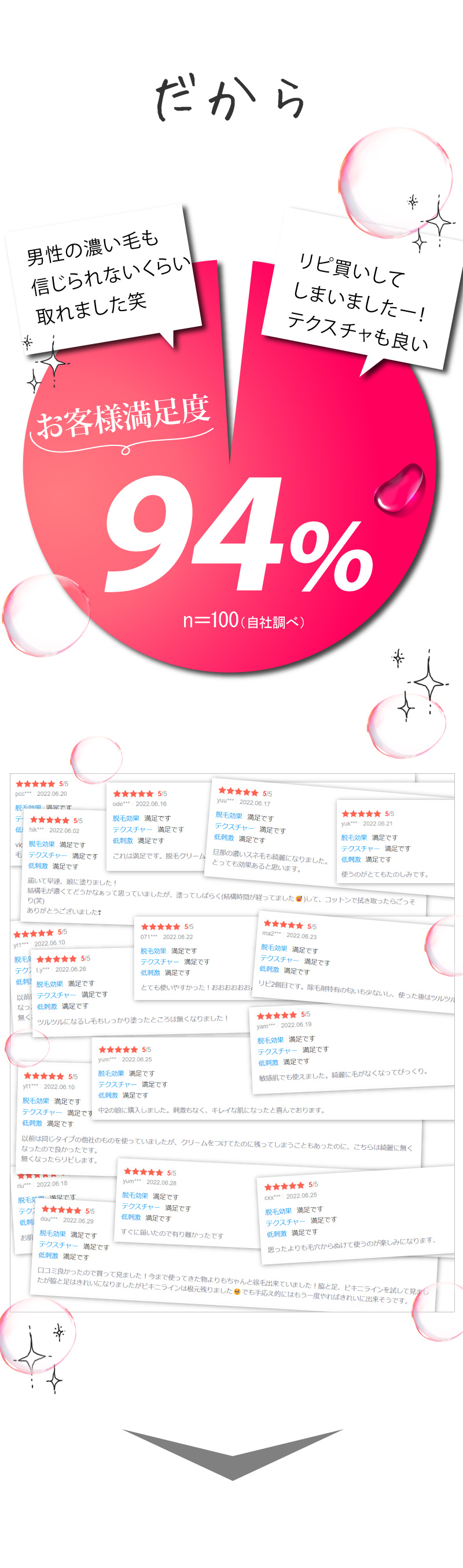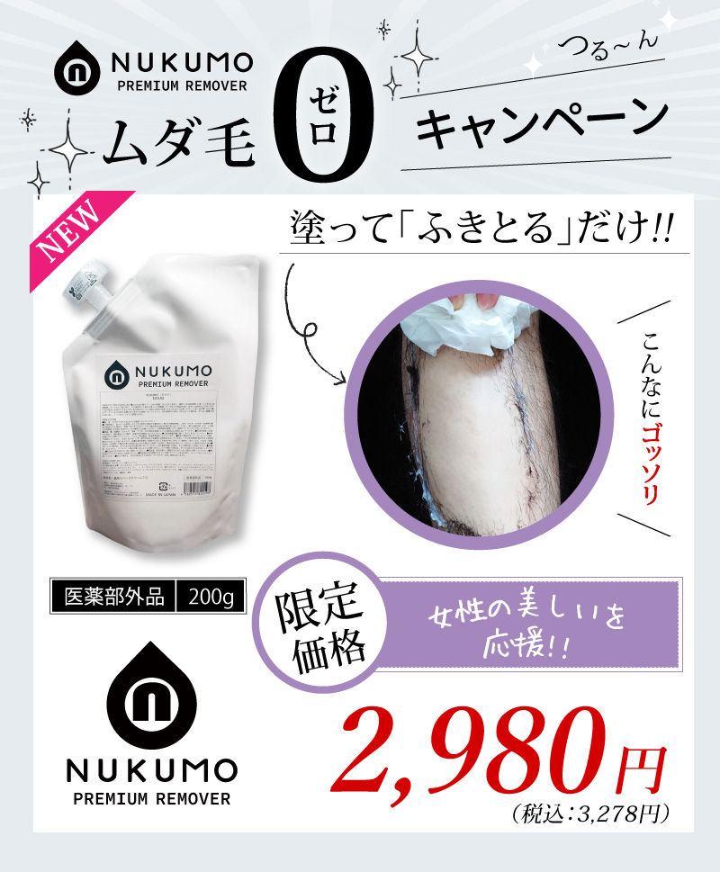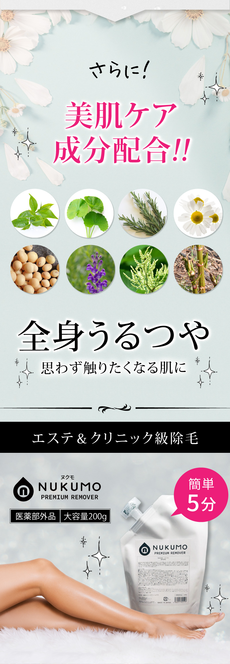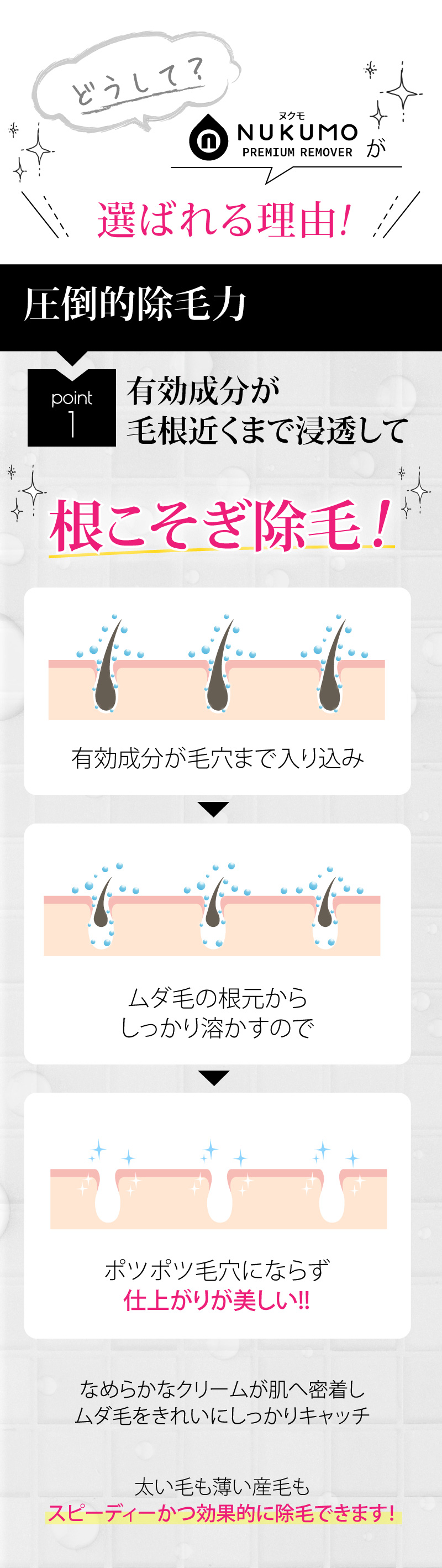 | ご使用方法 | 除毛する部位に毛が覆われる位の厚さ(1?3mm程度)をムラなく塗布し、通常5-10分間放置した後、ヘラあるいは脱脂綿、ガーゼなどで取り除く。その後除毛した部分を濡らした脱脂綿、ガーゼなどで清拭するか、あるいは湯水などで洗い流す。 ※毛の根元に本品が行きわたらず、毛の途中からつけた場合は完全に除毛できませんのでご注意ください。  |